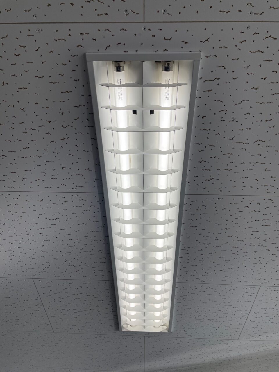 蛍光灯→LED 投稿日: 2025年12月4日 (2025年12月4日) 事務所の蛍光灯が点かなくなりました。蛍光管を交換してみましたが、 ダメでした。変圧器が故障しています。 蛍光管 器具はそのままで、LED管が点灯できるウラ技。 LED管 変圧器に入ってる配線を片方の局に流してやるだけ。簡単です。 理屈は簡単ですが、電気は見えないので怖いです。 専門技術者でなければ、できません。