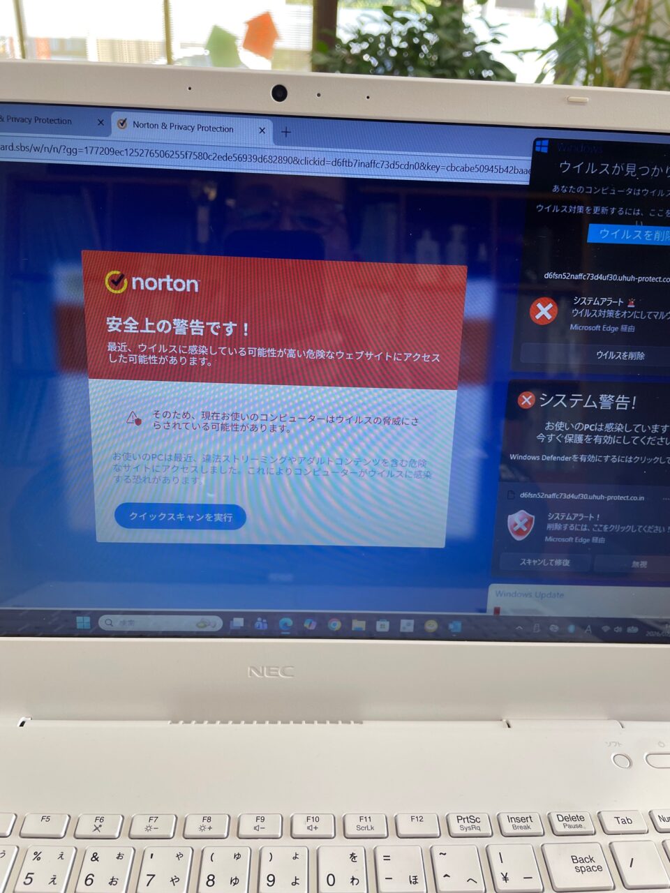 PC ウィルス感染?💦 投稿日: 2026年2月27日 突然、表示された感染を知らせるメッセージが止まりません。 PCでお世話になっているFさんに連絡。 リモートで支持をもらい、試してみましたが、残念。解決しません。💦 初期化をしましょうとの事で、今朝来社いただきました。 その前に、ひとつ考えられることを試しましょう。(設定の変更) あら、不思議。治りました。感謝、感謝、感謝です。ありがとうございました。